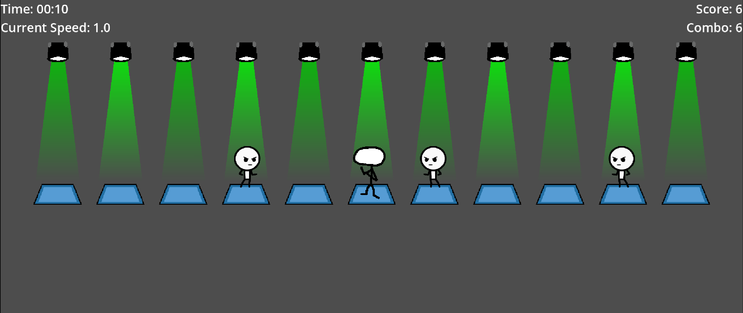Enemies approach from the left; enemies approach from the right- and it's up to you to beat them back to the beat of the music! The more baddies you take down, the higher your score gets, and the longer you fight, the faster they get. Chase your high score, and see how far you can get before the party dies down.